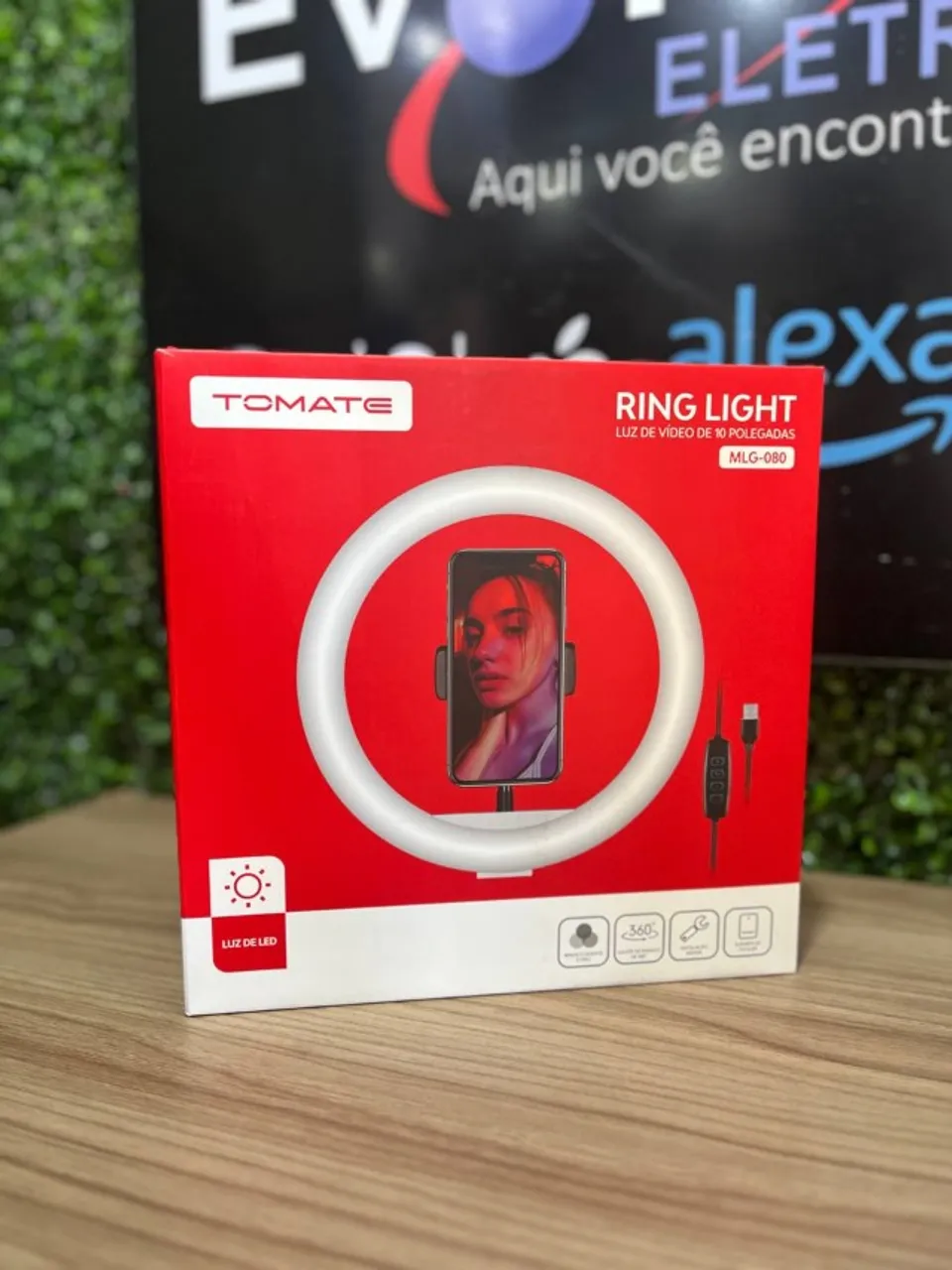 A Ring Light Tomate de 10? é ideal para selfies, vídeos, lives e makes impecáveis. Com ajuste de intensidade e temperatura de cor, ela valoriza cada detalhe. Compacta, prática e essencial para quem busca brilho profissional! E acompanha o Tripe de 2,10 metros.