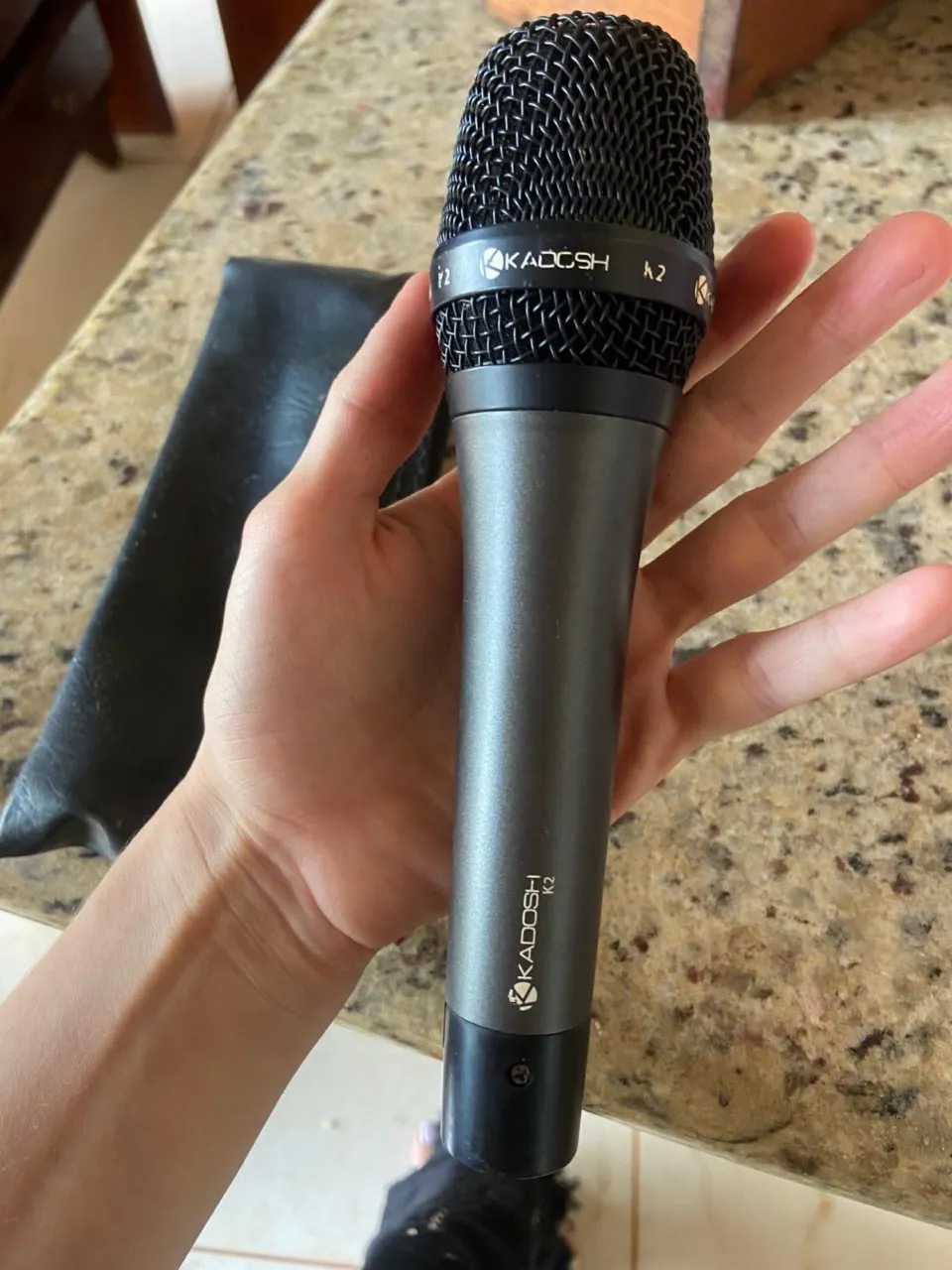 Microfone Kadosh K2, ideal para diversas aplicações vocais e instrumentais. Oferece alta qualidade de áudio, com design elegante e resistente.