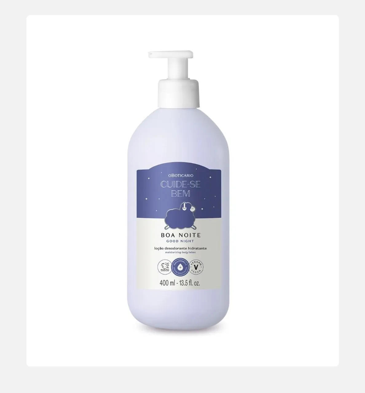 Experimente a Loção Desodorante Hidratante Cuide-se Bem Boa Noite! Proporciona hidratação intensa e um perfume suave para uma noite relaxante. Sinta a pele macia e perfumada!