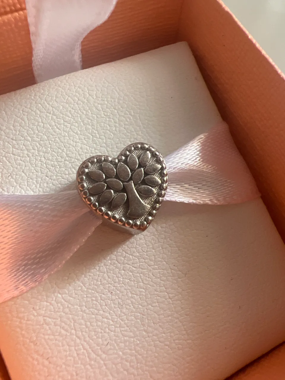 Lindo berloque Vivara em formato de coração com detalhes de árvore, perfeito para personalizar sua pulseira e expressar seu estilo. Uma joia delicada e charmosa para complementar seu visual!