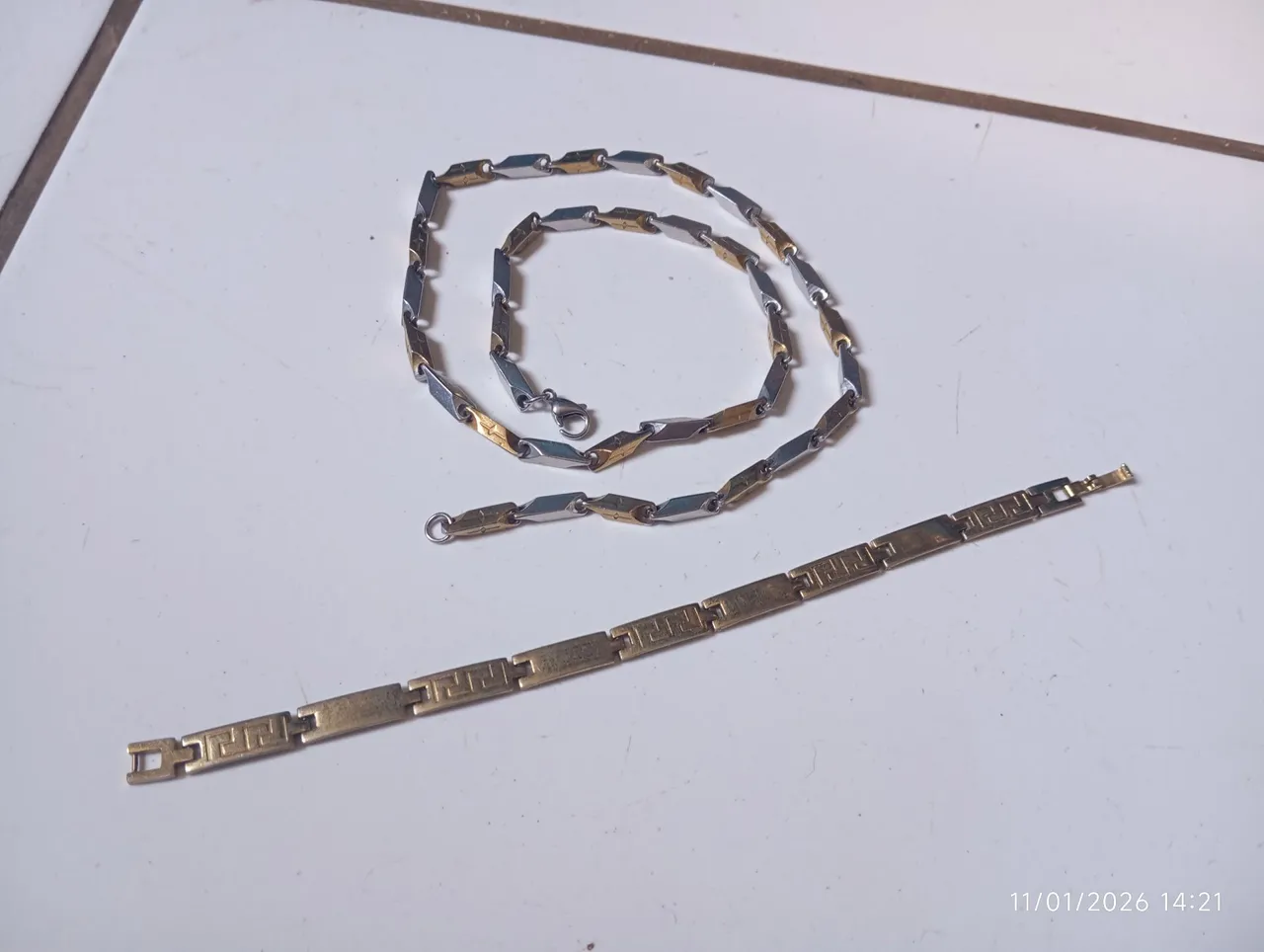 Correntinha e pulseira,a corrente está em ótimo estado mas a pulseira está um pouco escura devido o tempo parada. Posso negociar.