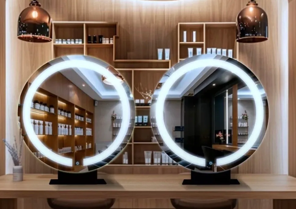 Ilumine sua rotina de beleza com esses espelhos duplos com LED! Design moderno e funcional, perfeitos para realçar sua maquiagem e cuidados pessoais. Adicione um toque de elegância ao seu espaço!