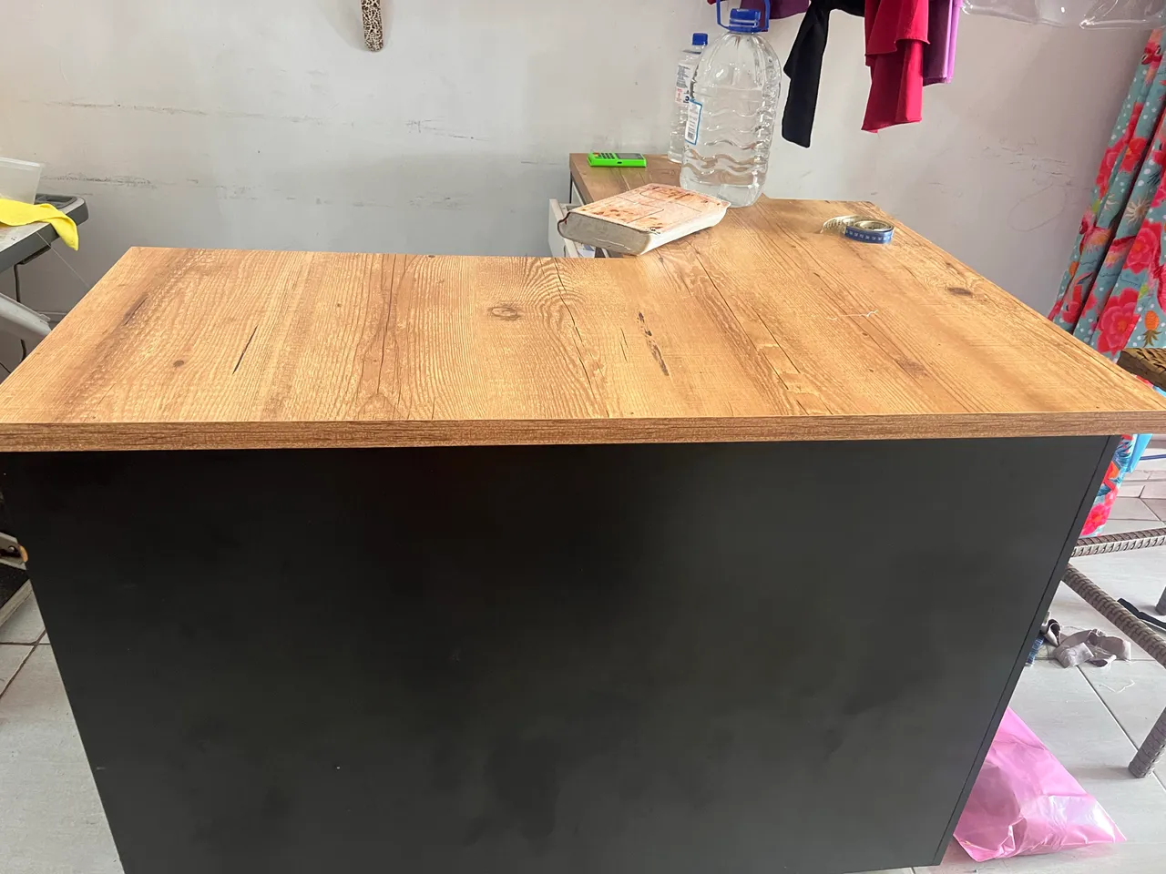 Balcão de madeira perfeito para o seu escritório! Design moderno e funcional, ideal para otimizar o espaço e organizar seus materiais de trabalho. Adicione um toque de elegância ao seu ambiente profissional.otimo para recepção
