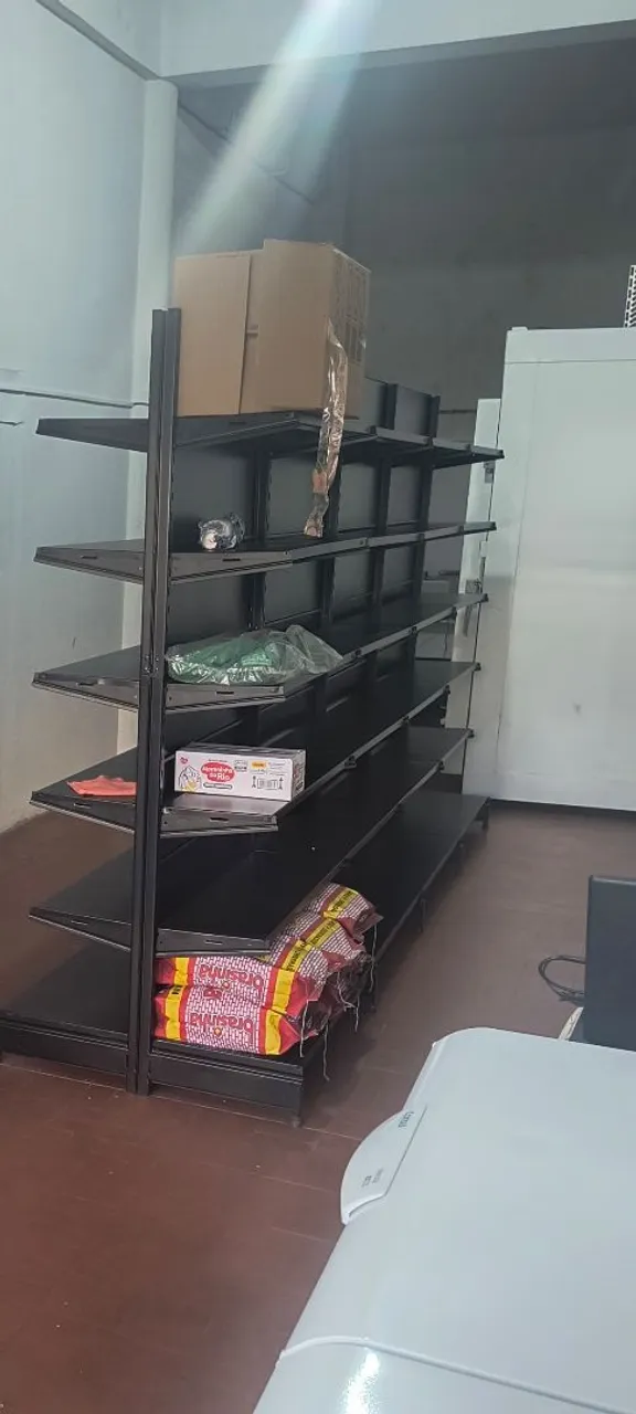 Gôndola central com design moderno e resistente. Ideal para otimizar o espaço e expor seus produtos de forma organizada e atrativa. Com 2 metros de altura por 1 de comprimento contendo 6 prateleiras de cada lado.