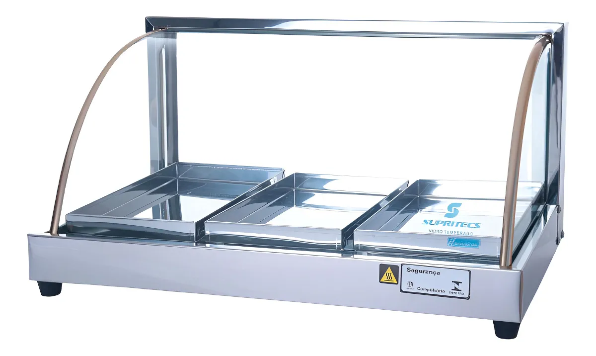 Estufa para salgados SUPRITECS 3 bandejas vidro curvo nova com garantia $339,00 a vista ou 10x de $36,90 no cartão de crédito fale conosco.
