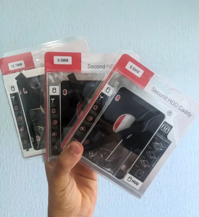 Caddy para HD/SSD, ideal para adicionar um segundo dispositivo de armazenamento em seu notebook. Compatível com HDs e SSDs de 9.5mm e 12.7mm. Produto novo e de alta qualidade.