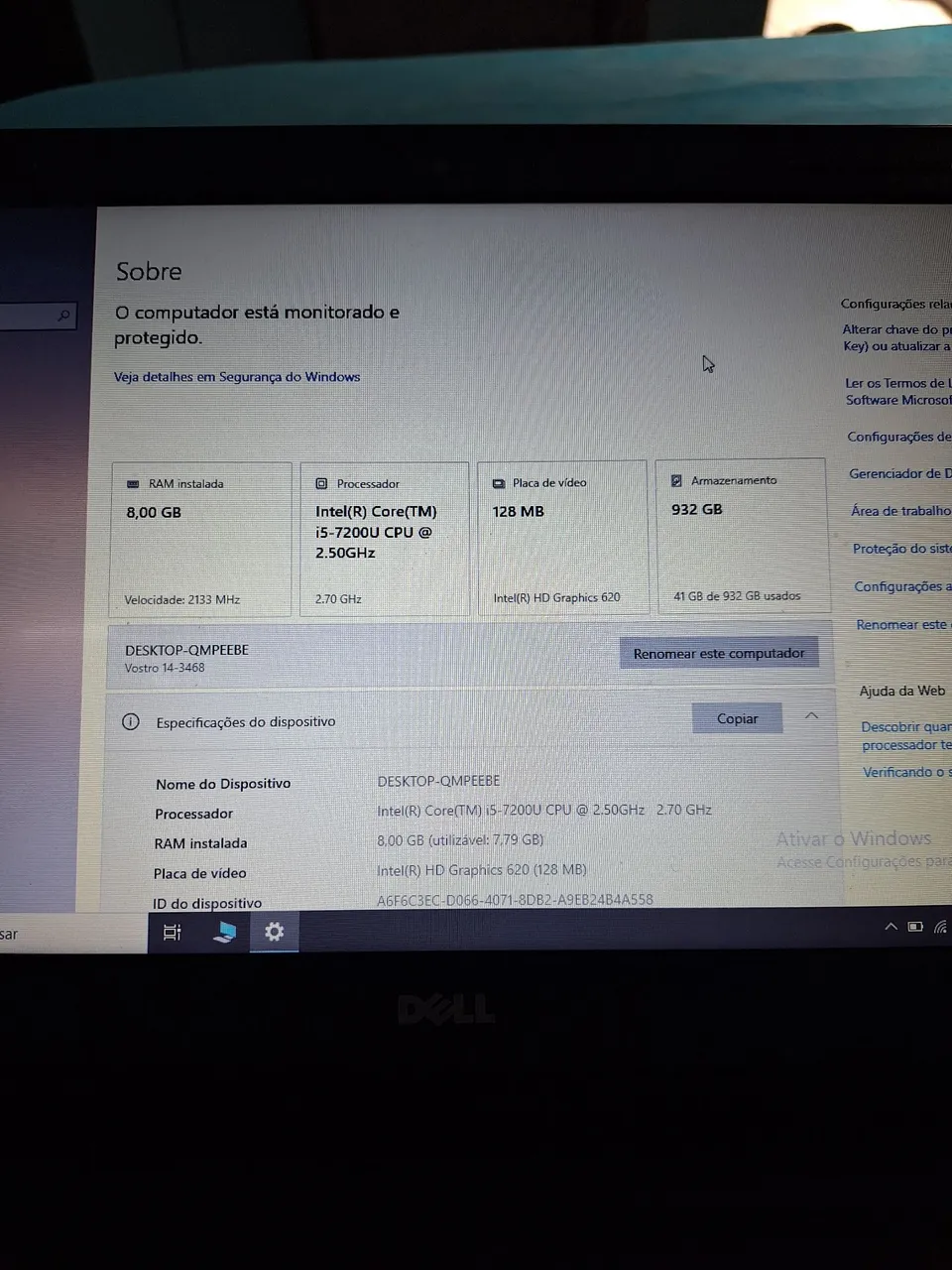Notebook Dell com processador Intel Core i5, 8GB de RAM e tela HD. Ideal para as suas tarefas diárias com desempenho e qualidade.
