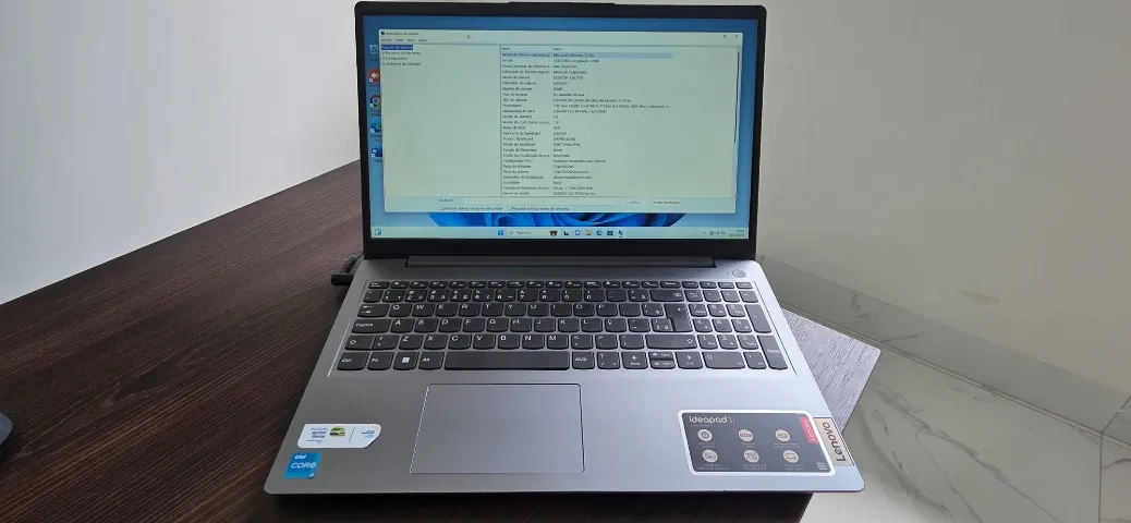 Lenovo i3-1115G4 com 8GB de RAM e SSD de 256GB. Equipamento bem cuidado, rápido e funcionando certinho. Tela 15". Bateria ok.