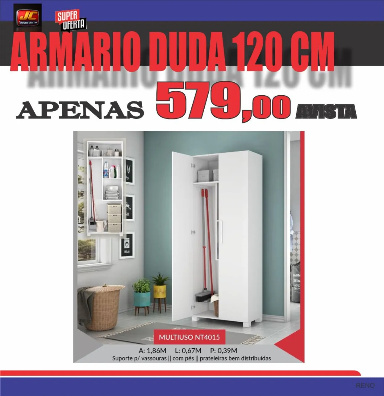 Apresentamos o Armário Duda 120cm, perfeito para otimizar seu espaço com elegância e funcionalidade. Com design moderno e prateleiras bem distribuídas, este armário oferece amplo espaço para organizar seus pertences. Suporte para vassouras, pés e acabamento impecável para um ambiente organizado e com estilo!