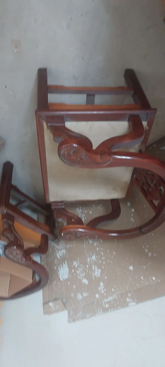 Conjunto de 2 cadeiras madeira retrô madeira pau Brasil,perfeitas para dar um toque de charme e elegância ao seu ambiente. Design clássico e confortável para você relaxar com estilo.OBs, cadeiras com detalhes, precisa de uns reparos.