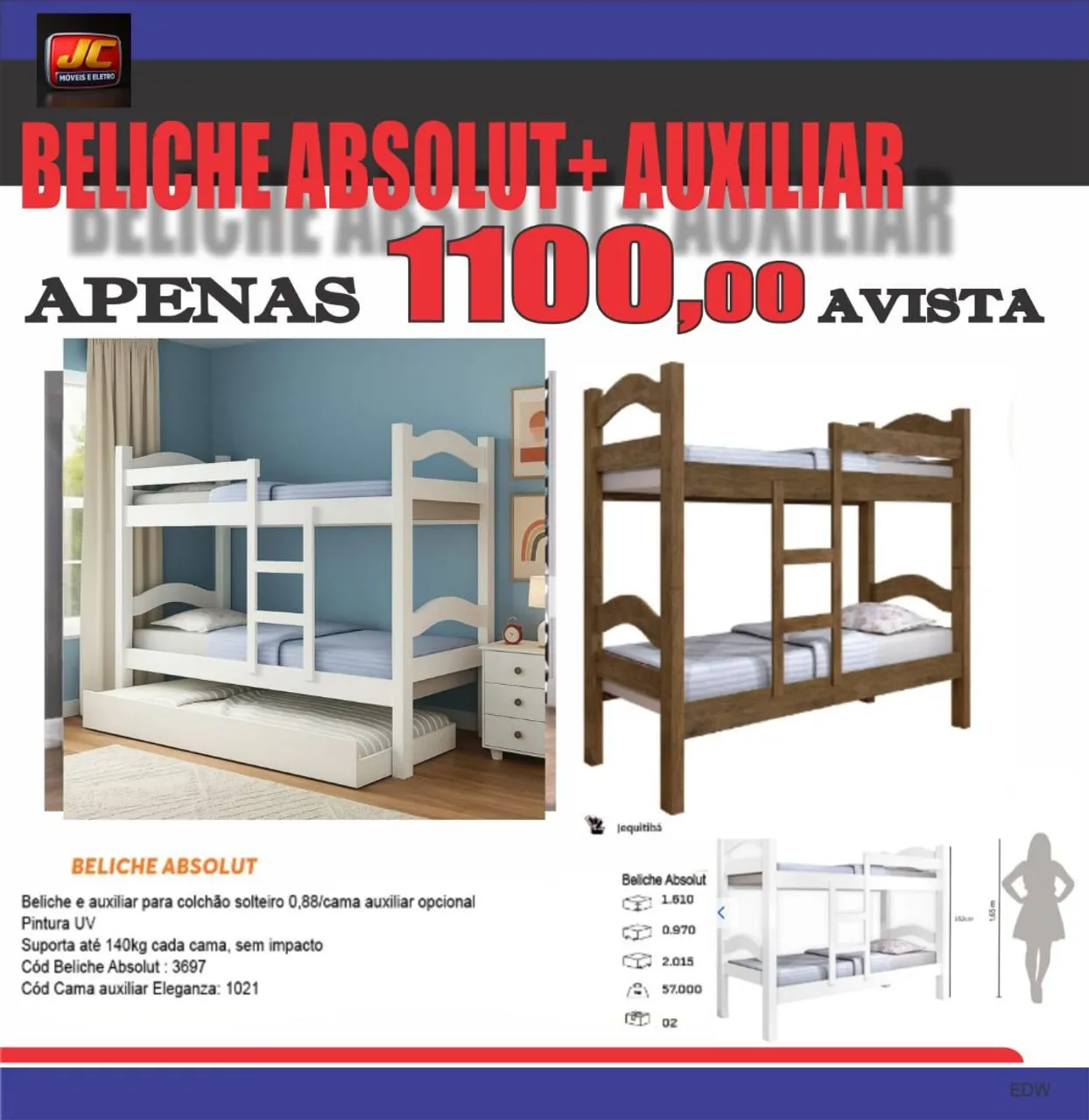 Beliche Absolut com cama auxiliar, ideal para otimizar espaço e garantir noites de sono tranquilas. Design moderno e resistente, perfeito para o quarto das crianças. Conforto e praticidade em um só móvel!