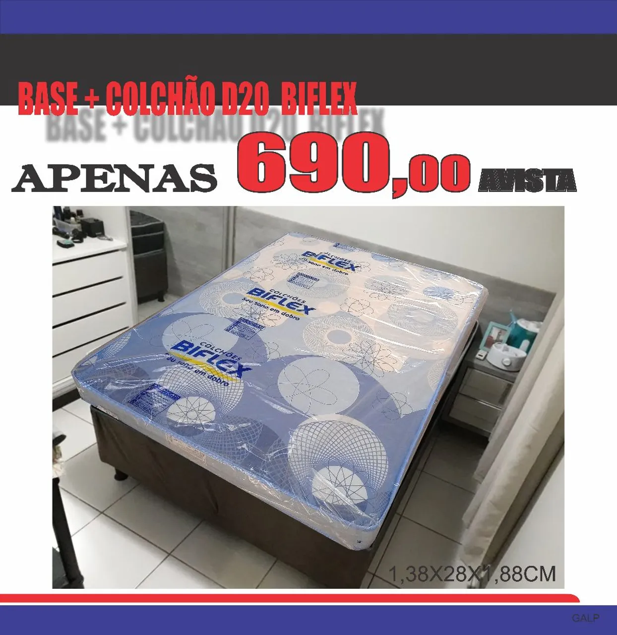Cama casal com colchão D20 Biflex, proporcionando conforto e durabilidade para suas noites de sono. Dimensões de 1,38x28x1,88cm. Ideal para um descanso revigorante!