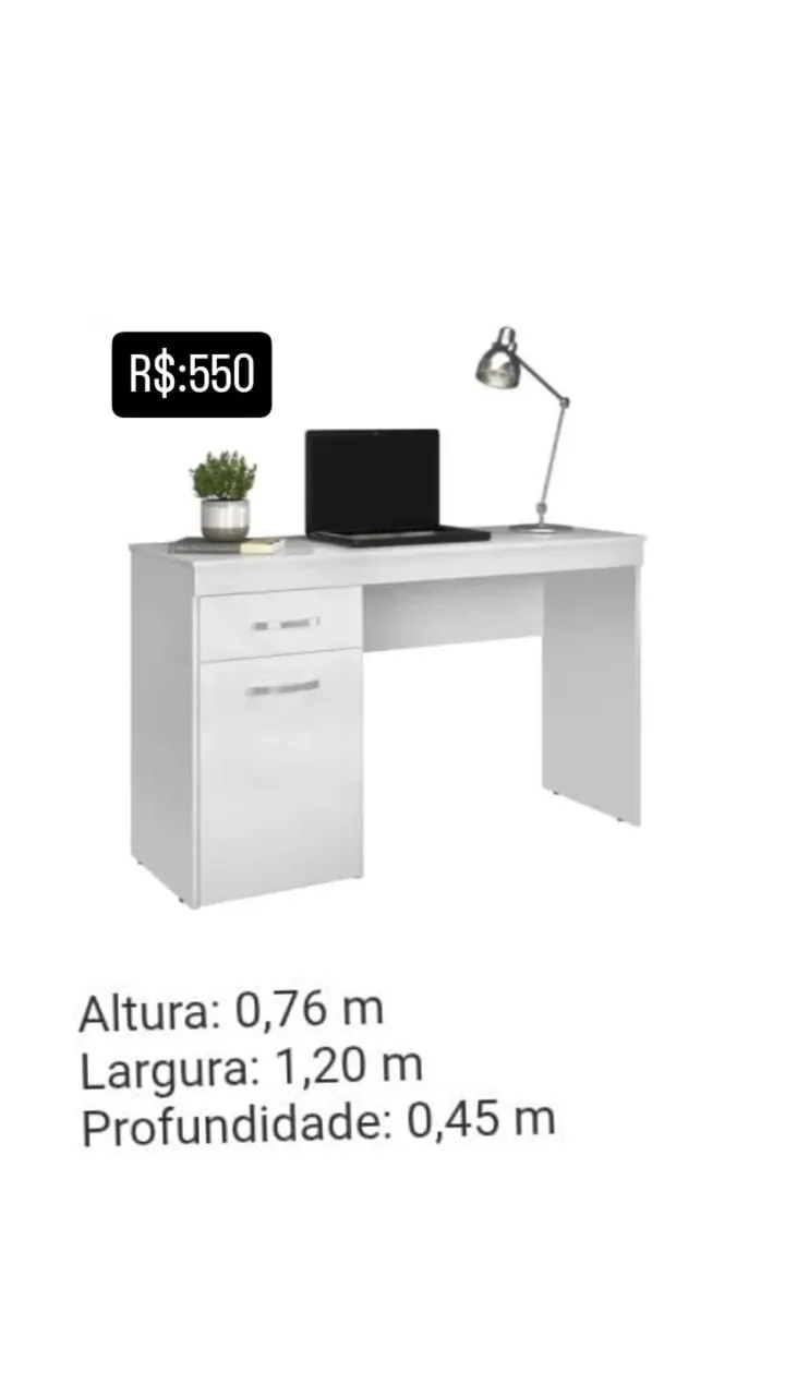 A escrivaninha perfeita para o seu home office! Com design moderno e elegante, ela oferece espaço e organização para você trabalhar com conforto. Seu acabamento branco traz leveza e combina com qualquer ambiente. Dimensões ideais para otimizar seu espaço. Adquira já a sua!