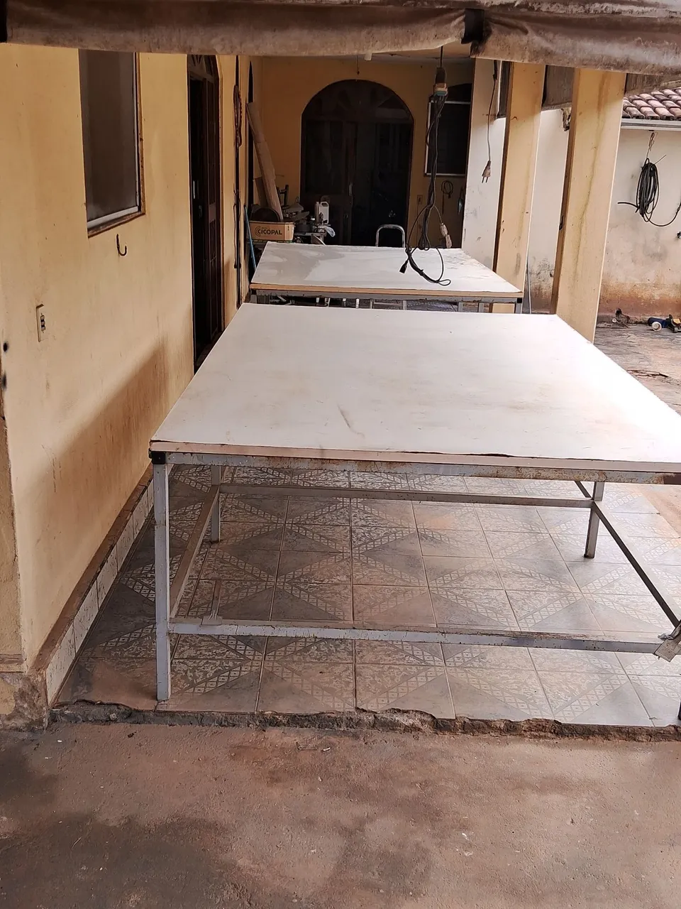 Mesa ideal para corte de tecidos, com estrutura resistente e ampla superfície. Perfeita para costureiras e artesãos que buscam praticidade e espaço para seus cortes, uma peça 2.75 x1. 80