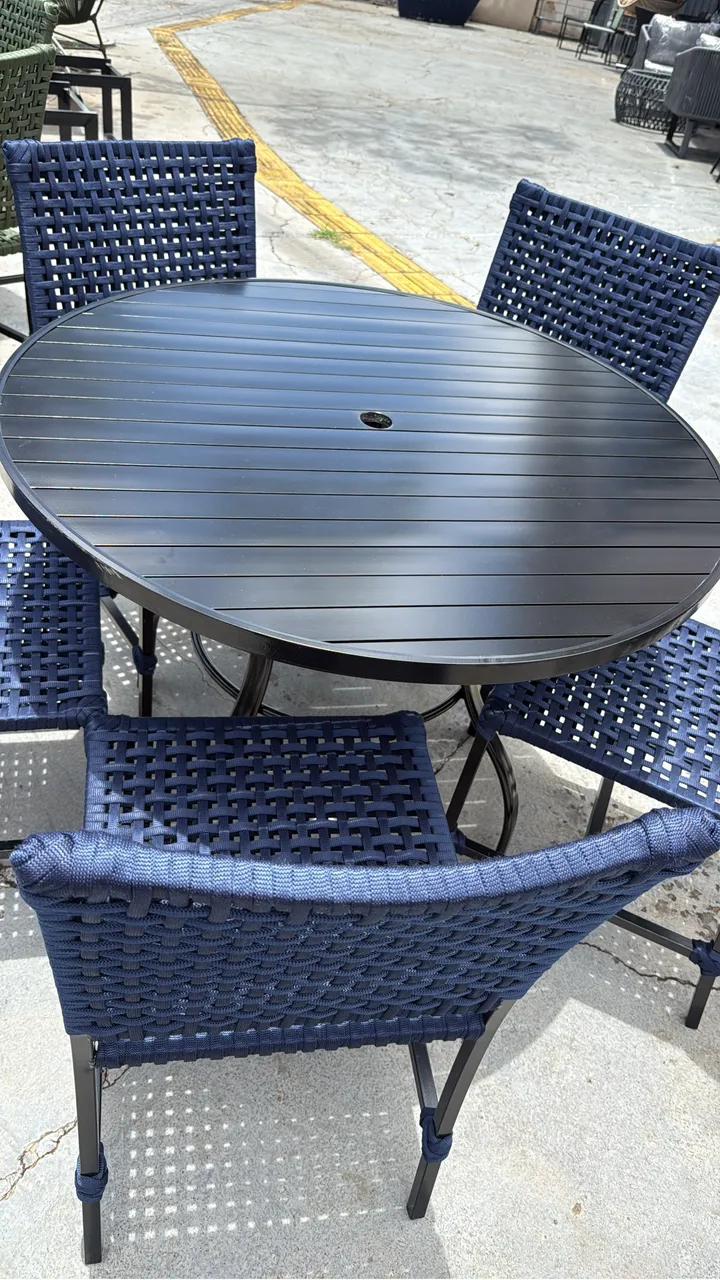 Mesa ripada de alumínio com 5 cadeiras na corda náutica