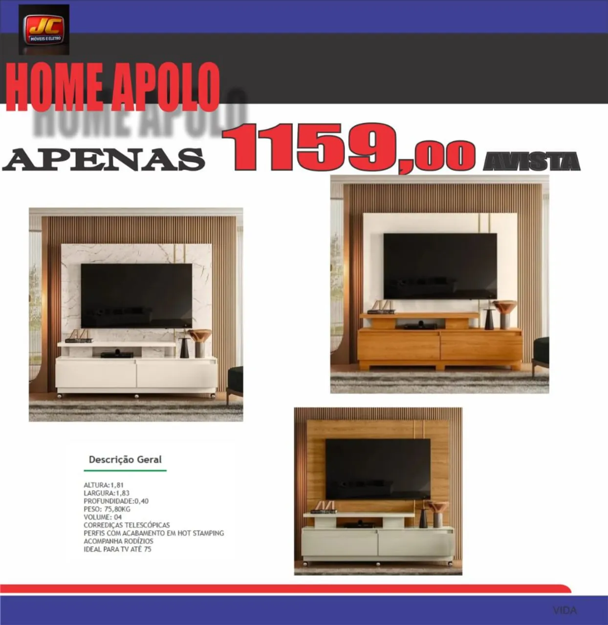 Apresentamos o Home Apolo, perfeito para sua sala! Com design moderno e elegante, o Home Apolo oferece espaço para sua TV de até 75 polegadas e ainda conta com detalhes em hot stamping. Possui rodízios para fácil movimentação. Transforme sua sala com estilo e funcionalidade!