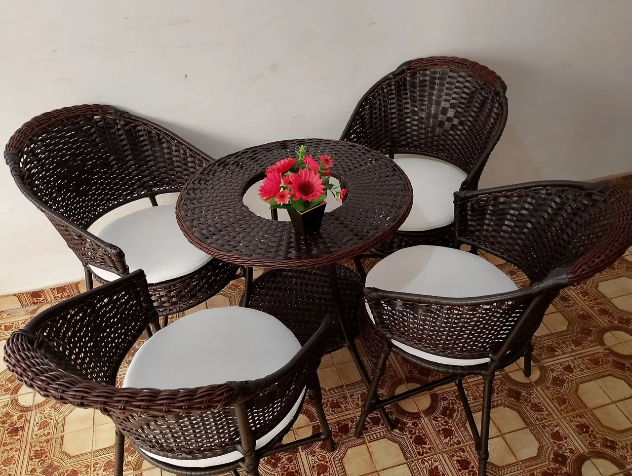 Desfrute de momentos relaxantes com este elegante jogo de poltronas! Perfeito para criar um ambiente acolhedor e charmoso em sua área de lazer. Design sofisticado e confortável para você e seus convidados. Com almofadas removível