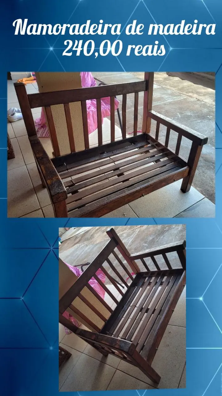 Apresentamos a charmosa namoradeira de madeira, perfeita para relaxar e decorar seu ambiente com elegância. Desfrute de momentos de tranquilidade com esta peça única e cheia de estilo.