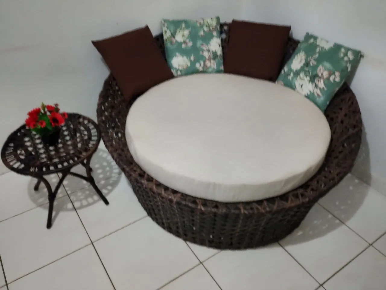Este sofá redondo em vime é a peça perfeita para relaxar e decorar o seu espaço. Com design elegante e confortável, ele proporciona momentos de puro aconchego. Ideal para ambientes internos e externos, este sofá é a combinação perfeita de estilo e conforto.