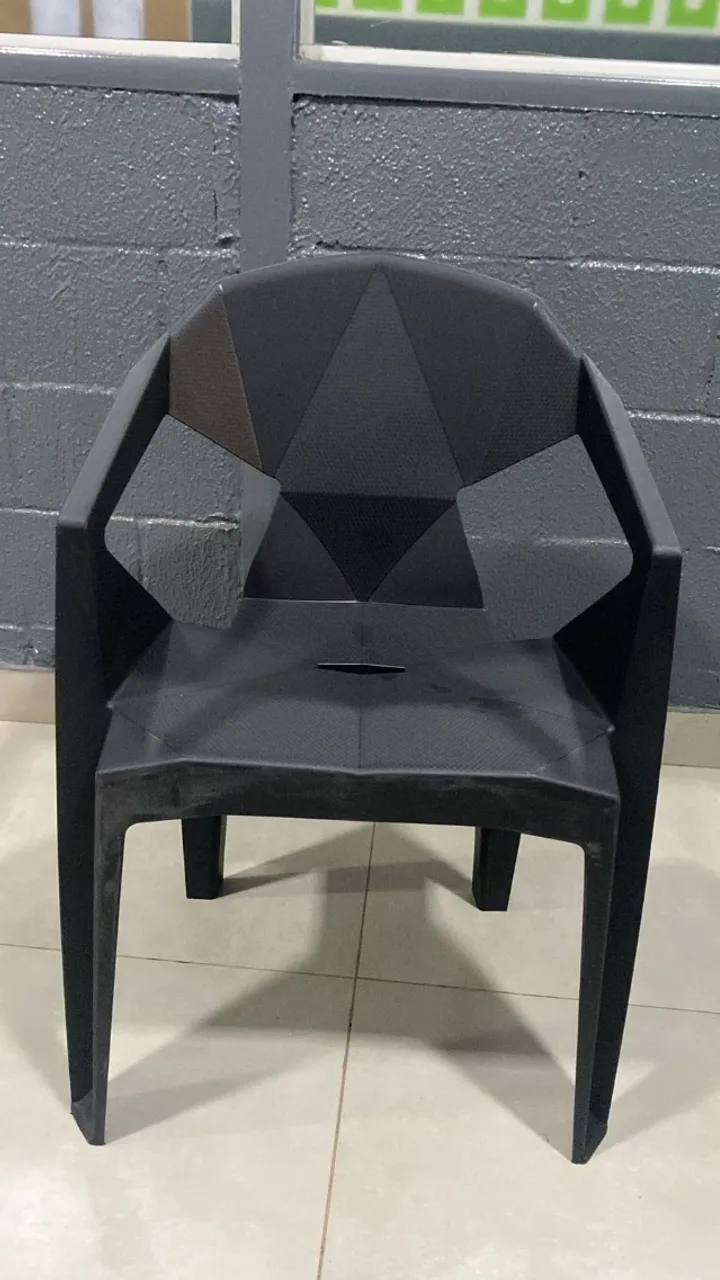 PROMOÇÃO . Poltrona preta com design geométrico moderno e elegante. Ideal para diversos ambientes, com design único e confortável. Produto Novo. Pronta entrega. Falar com Aline. A vista $65,00 e a prazo $68,00
