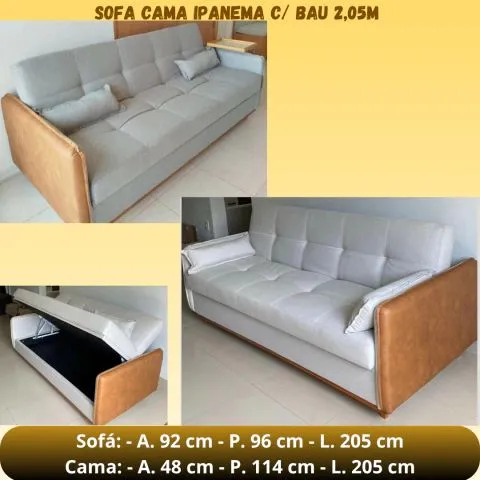 Apresentamos o Sofá Cama Ipanema com baú, perfeito para otimizar seu espaço com estilo e praticidade. Design moderno, confortável e funcional, ideal para relaxar e receber visitas. Com 2,05 metros, oferece amplo espaço para acomodar você e seus convidados. Transforme sua sala em um ambiente versátil e acolhedor!