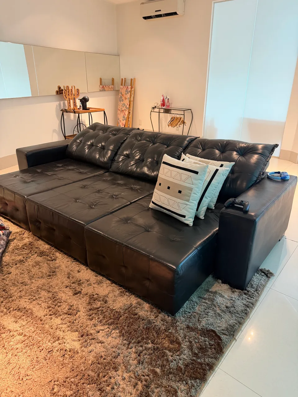 Desfrute do conforto e elegância com este sofá de couro legítimo. Perfeito para relaxar e decorar sua sala com estilo. 3metros retrátil. Valor pedido 2.800,00