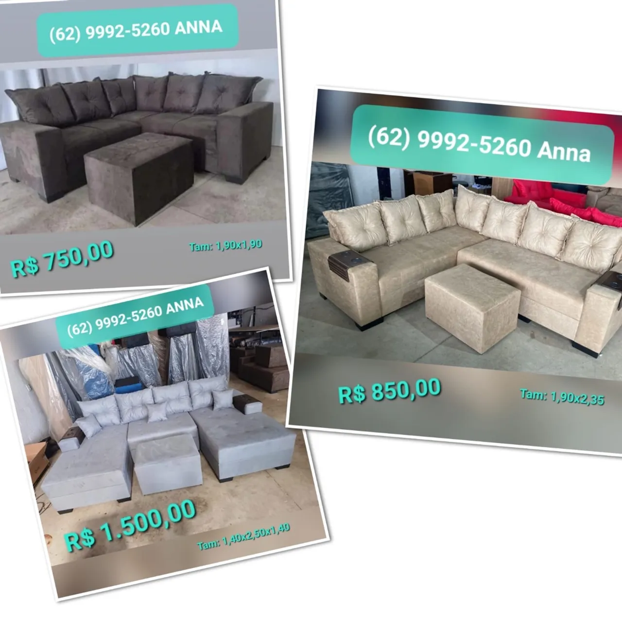 SOFÁS DE CANTO | PUFF DE BRINDE | VÁRIAS CORES | GOIÂNIA E REGIÕES CONSULTE!! CONTATO: 629992-5260 *ANA* *dados técnicos do sofá de canto* Tecido: Sued amassado Madeira : Eucalipto Espuma : D 33 Garantia: 6 meses CONTATO: 629992-5260 *ANA* FAZEMOS ENTREGA: GOIÂNIA E REGIÕES. ENTREGA GRÁTIS GOIÂNIA E APARECIDA DE GOIÂNIA . ACEITAMOS CARTÃO DE CRÉDITO PARCELAMOS EM 12x CONTATO: 629992-5260 *ANA*