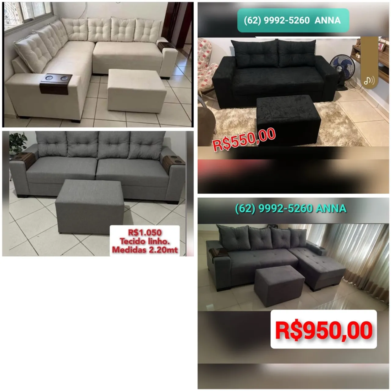 SOFÁS DE CANTO | PUFF DE BRINDE | VÁRIAS CORES | GOIÂNIA E REGIÕES CONSULTE!! CONTATO: 629992-5260 *ANA* *dados técnicos do sofá de canto* Tecido: Sued amassado Madeira : Eucalipto Espuma : D 33 Garantia: 6 meses CONTATO: 629992-5260 *ANA* FAZEMOS ENTREGA: GOIÂNIA E REGIÕES. ENTREGA GRÁTIS GOIÂNIA E APARECIDA DE GOIÂNIA . ACEITAMOS CARTÃO DE CRÉDITO PARCELAMOS EM 12x CONTATO: 629992-5260 *ANA*