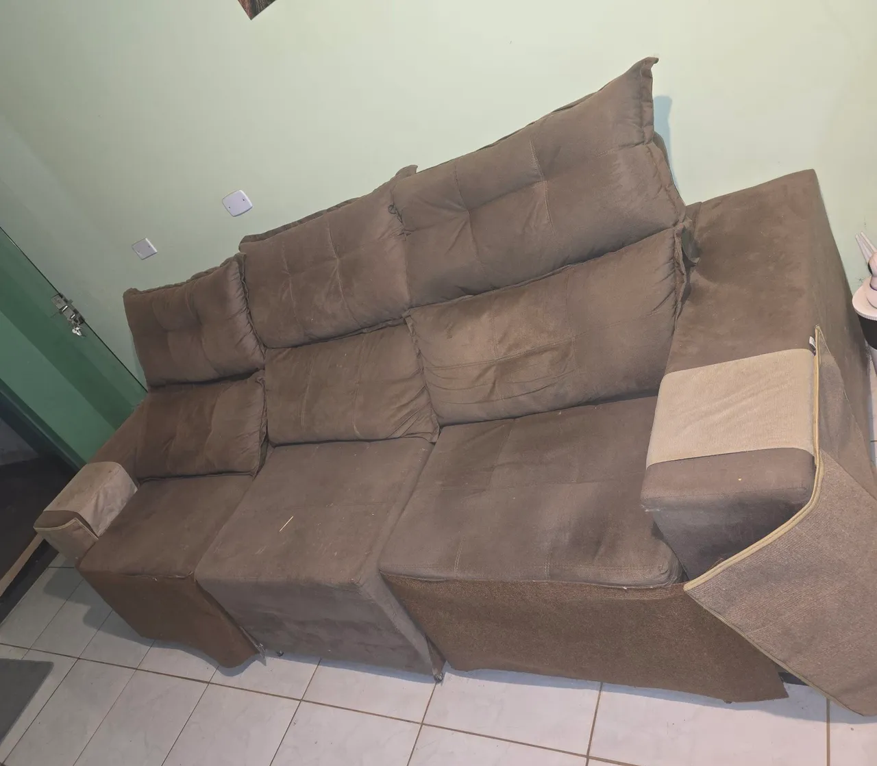 Sofá espaçoso e aconchegante, ideal para relaxar e aproveitar momentos de lazer. Perfeito para a sua sala!
