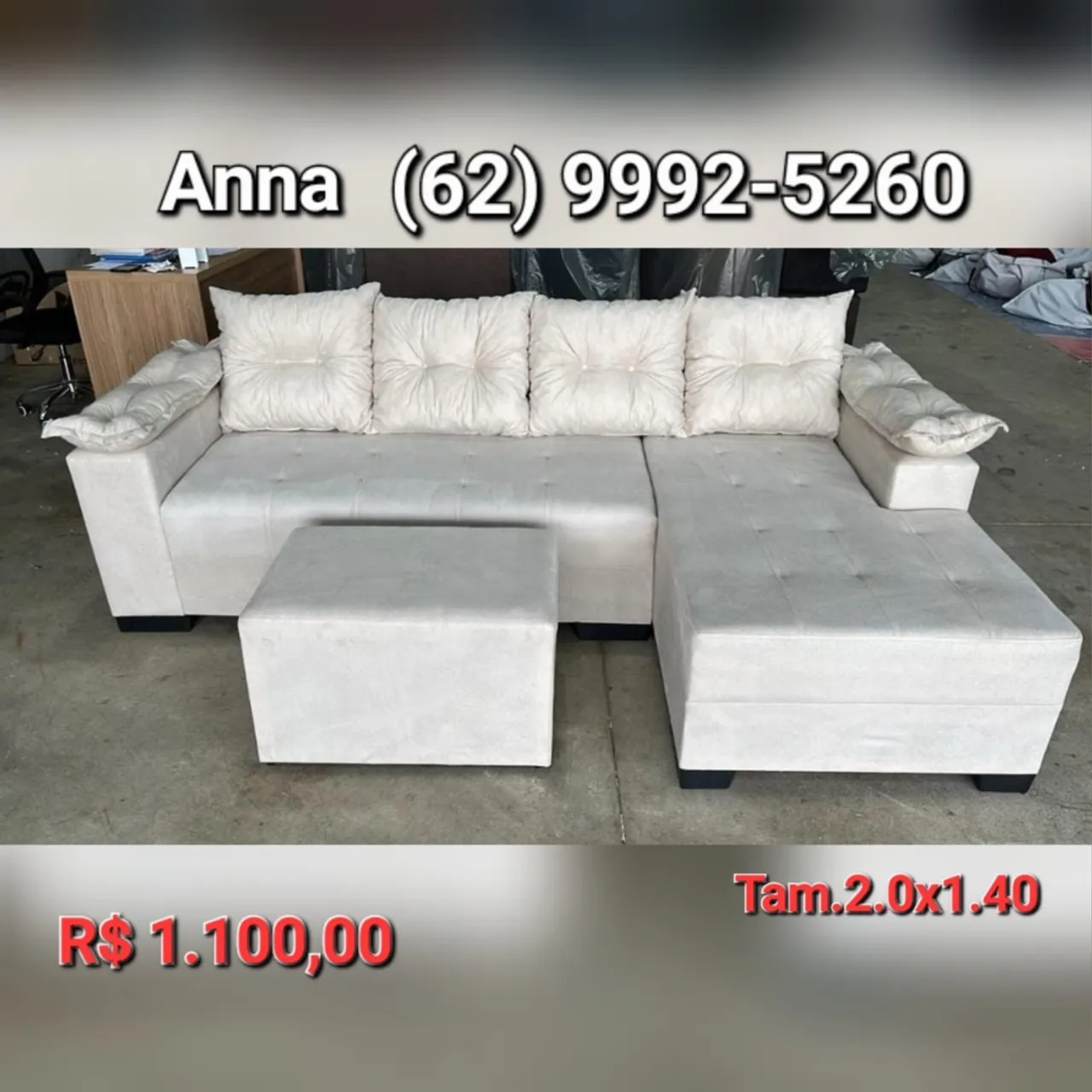 SOFÁS DE CANTO | PUFF DE BRINDE | VÁRIAS CORES | GOIÂNIA E REGIÕES CONSULTE!! CONTATO: 629992-5260 *ANA* *dados técnicos do sofá de canto* Tecido: Sued amassado Madeira : Eucalipto Espuma : D 33 Garantia: 6 meses CONTATO: 629992-5260 *ANA* FAZEMOS ENTREGA: GOIÂNIA E REGIÕES. ENTREGA GRÁTIS GOIÂNIA E APARECIDA DE GOIÂNIA . ACEITAMOS CARTÃO DE CRÉDITO PARCELAMOS EM 12x CONTATO: 629992-5260 *ANA*