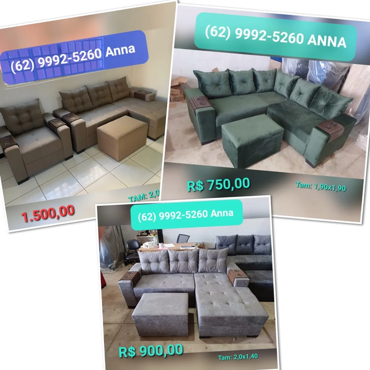 SOFÁS DE CANTO | PUFF DE BRINDE | VÁRIAS CORES | GOIÂNIA E REGIÕES CONSULTE!! CONTATO: 629992-5260 *ANA* *dados técnicos do sofá de canto* Tecido: Sued amassado Madeira : Eucalipto Espuma : D 33 Garantia: 6 meses CONTATO: 629992-5260 *ANA* FAZEMOS ENTREGA: GOIÂNIA E REGIÕES. ENTREGA GRÁTIS GOIÂNIA E APARECIDA DE GOIÂNIA . ACEITAMOS CARTÃO DE CRÉDITO PARCELAMOS EM 12x CONTATO: 629992-5260 *ANA*