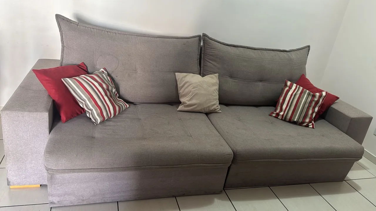 Sofá espaçoso de 2,90 metros na elegante cor cinza. Perfeito para acomodar sua família e amigos com conforto e estilo. Design moderno e acabamento impecável para transformar sua sala.