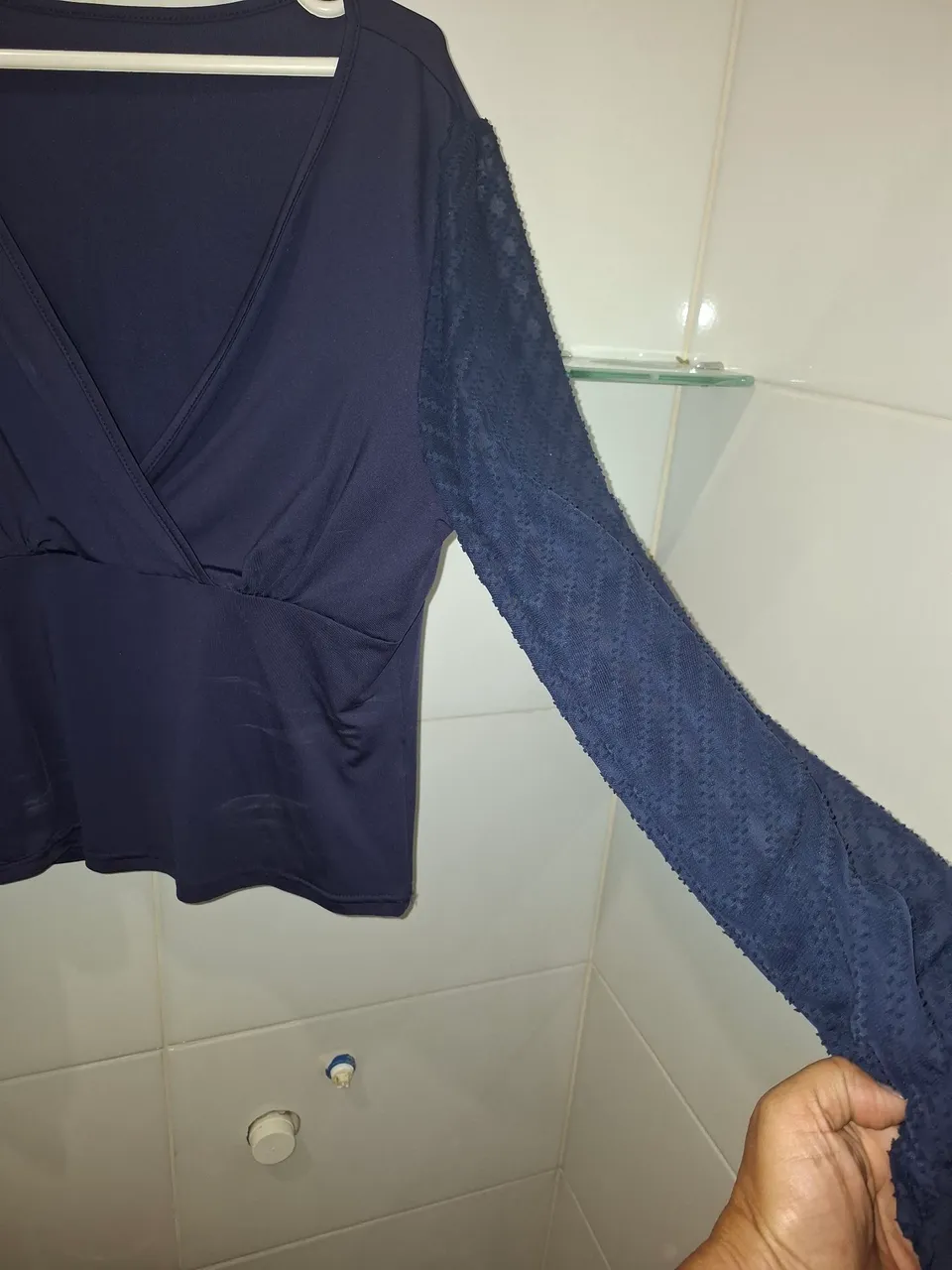 Blusa manga longa lastex manga em renda, decote em V cruzado, linda no corpo usada uma única vez. Estou vendendo porque nao uso mais decote veste do M ao G pois estica bem.