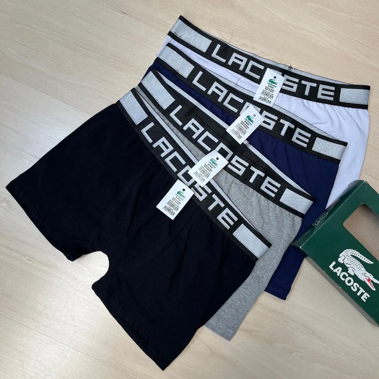Kit com 4 cuecas boxer Lacoste originais, cores variadas e logo na cintura. Conforto e estilo para o seu dia a dia. Vendemos atacado e varejo