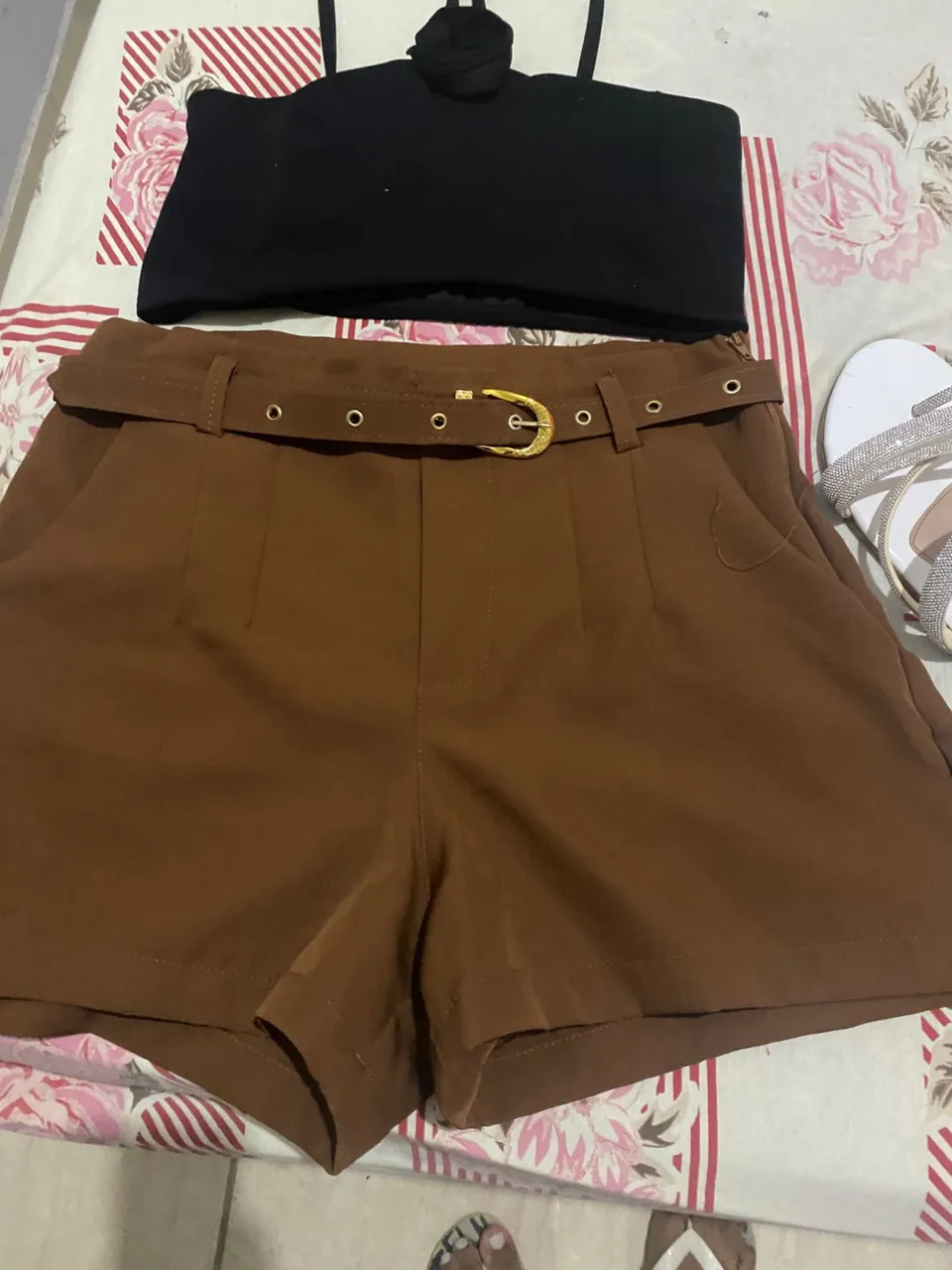 Shorts marrons com cinto, perfeitos para um look moderno e estiloso. Combine com diversas blusas e crie looks incríveis!