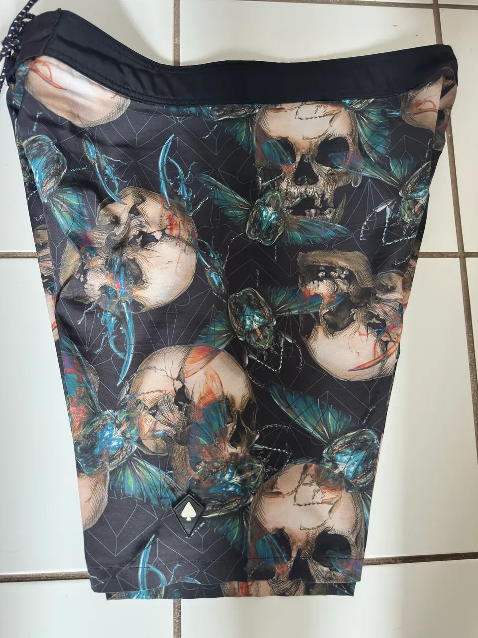 Shorts MCD com estampa de caveiras, perfeito para quem busca estilo e atitude. Confeccionado com tecido de qualidade, oferece conforto e durabilidade.