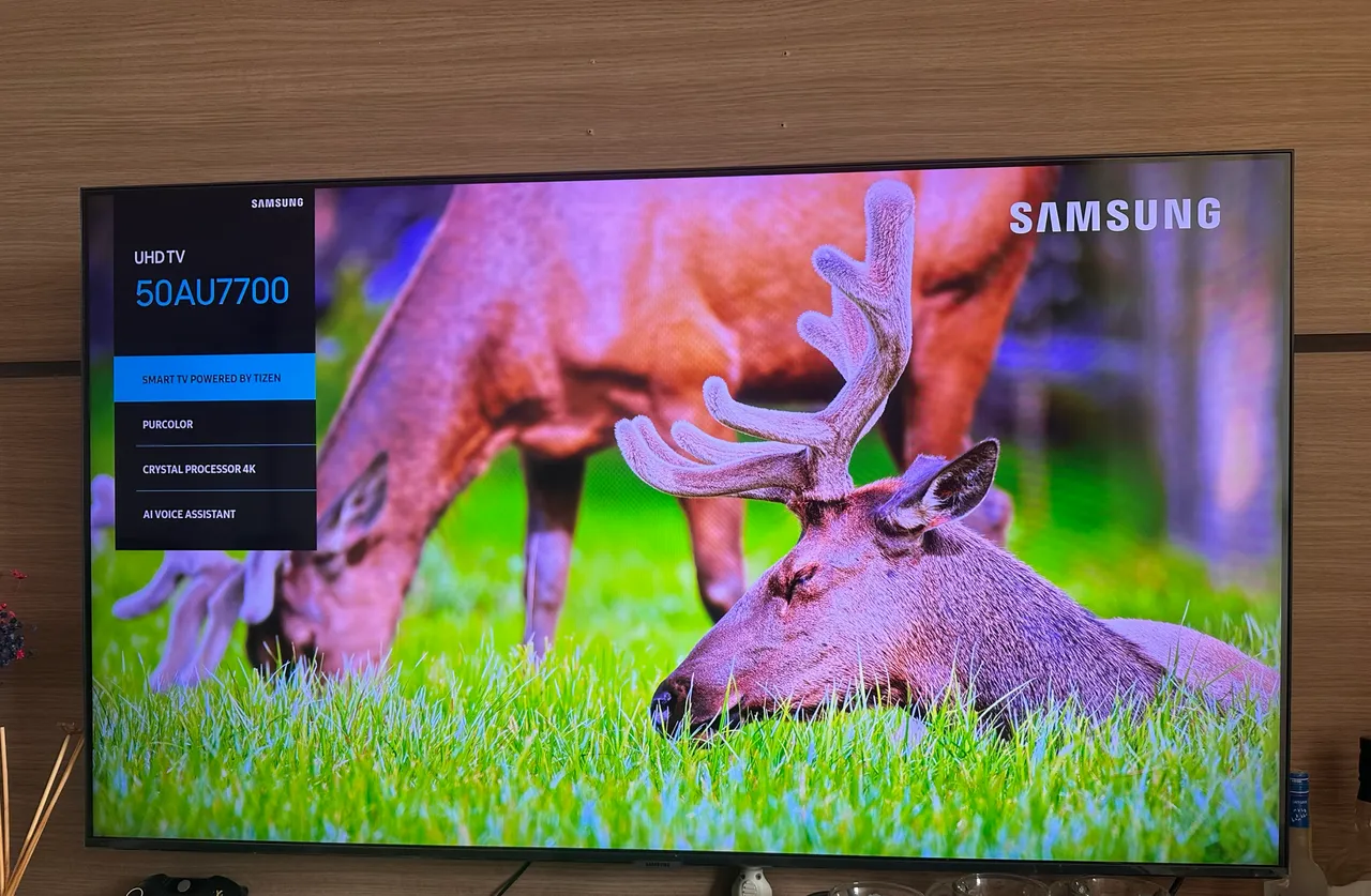 Televisão Smart Samsung 50AU7700 50 polegadas, com Alexa integrada, controle original, em perfeitas condições