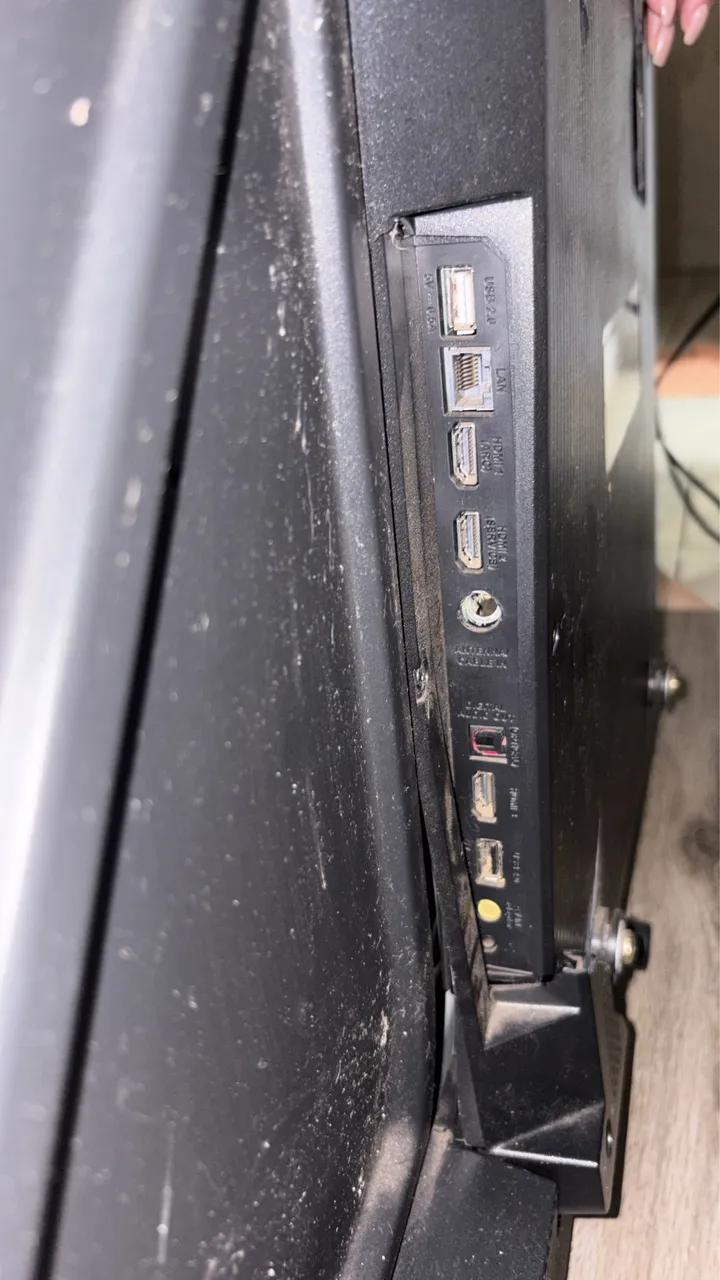 Tv caiu do painel,está pegando somente no Wi-Fi ,está com uma lista no cantinho da tela e uma mancha suave na tela ,mas funciona normal pega Netflix,YouTube.VALOR BAIXO PRA SAIR LOGO