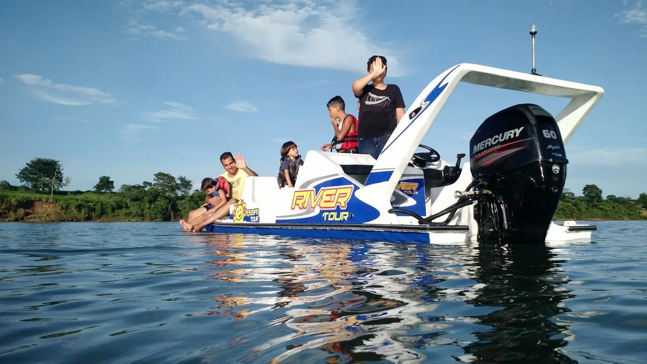 Catamarã Motor 60 HP mercury 4 tempos Bateria Bombas de porão Som Carreta rodoviária.